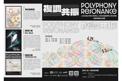國立中興大學畢業專題展演執行團隊將於115年4月29日至5月3日舉辦展覽《複調共振 Polyphony Resonance》,由學生謝明芳、邱姵瑄、黃卉妤、吳儀岑共同策劃,並由趙欣怡老師指導。