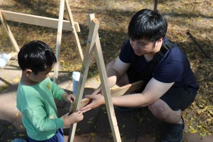 「乾淨水源的重要性」主題則以繪本閱讀為引導,讓孩子觀察故事中水池生態的變化,提出問題並進一步連結至全球水資源分配不均的現象。活動同時引導幼兒認識臺灣日常用水的便利性,以及在天災或突發狀況下可能面臨的挑戰。活動中安排親子共同動手製作 Tippy Tap 簡易洗手裝置,透過實作讓孩子理解在缺乏自來水的情境下,仍能以有限資源維持基本衛生,並實際體驗取水、用水與節水的方式,進而培養珍惜水資源的意識。活動結束後,家長回饋顯示,孩子在家庭生活中出現主動節水、提醒家人用水與提出相關問題等行為,顯示學習已有效延伸至家庭情境。