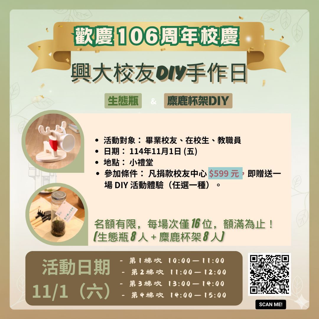 迎接106周年校慶,校友中心誠摯邀請您一起動手創造美好回憶!