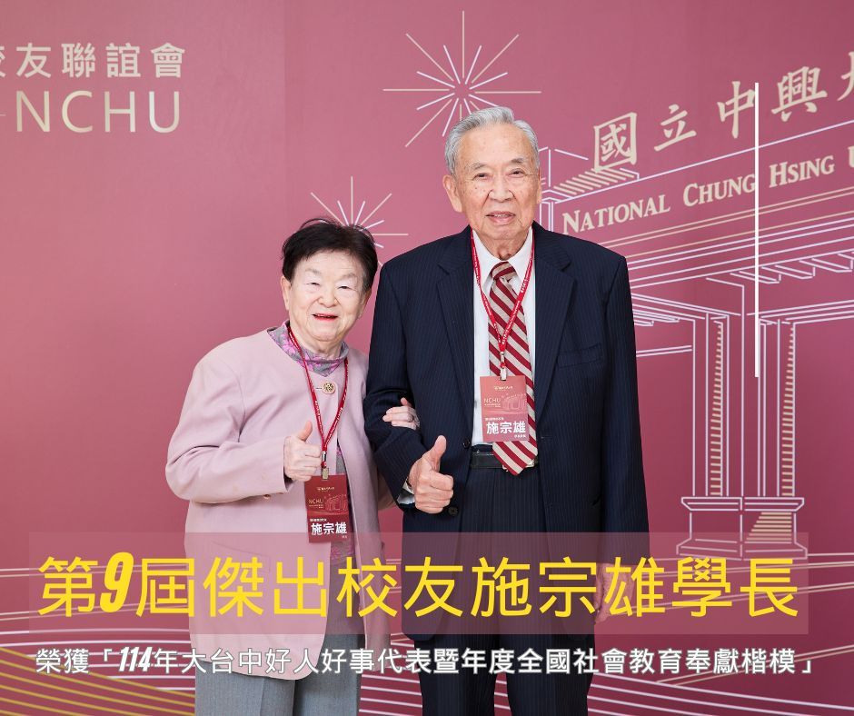 第9屆傑出校友,51年畜牧學系(今動物科學系)畢業的施宗雄教授,以其一生的奉獻與善行,榮獲「114年大台中好人好事代表暨年度全國社會教育奉獻楷模」。