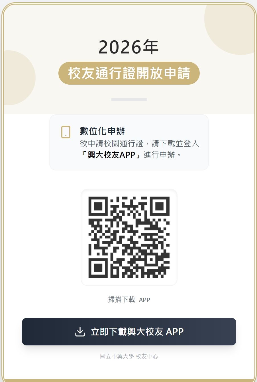 請至興大校友APP-校園通行證上傳相關文件,審核需3-5個工作天。