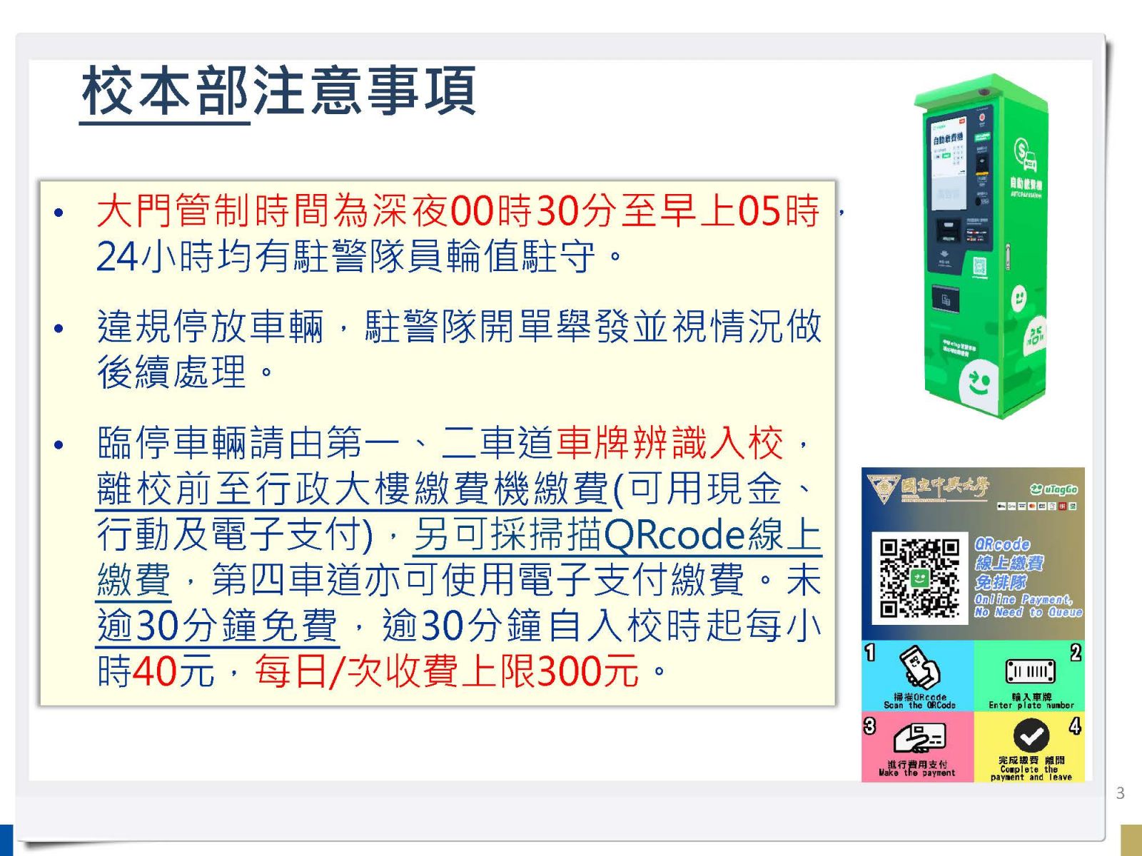 請詳閱法規彙編/駐警隊/本校校園交通管理辨法&汽機車停車收費要點