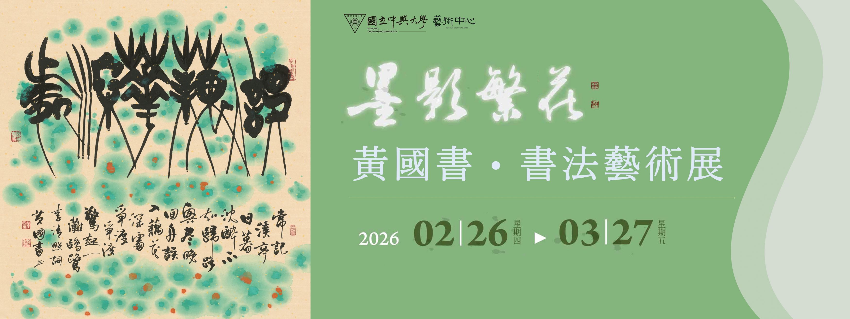 僅訂於115年二月二十六號(四)至三月二十七日(五),舉辦「墨影繁花—黃國書書法展」。肅柬奉邀,敬請光臨指教