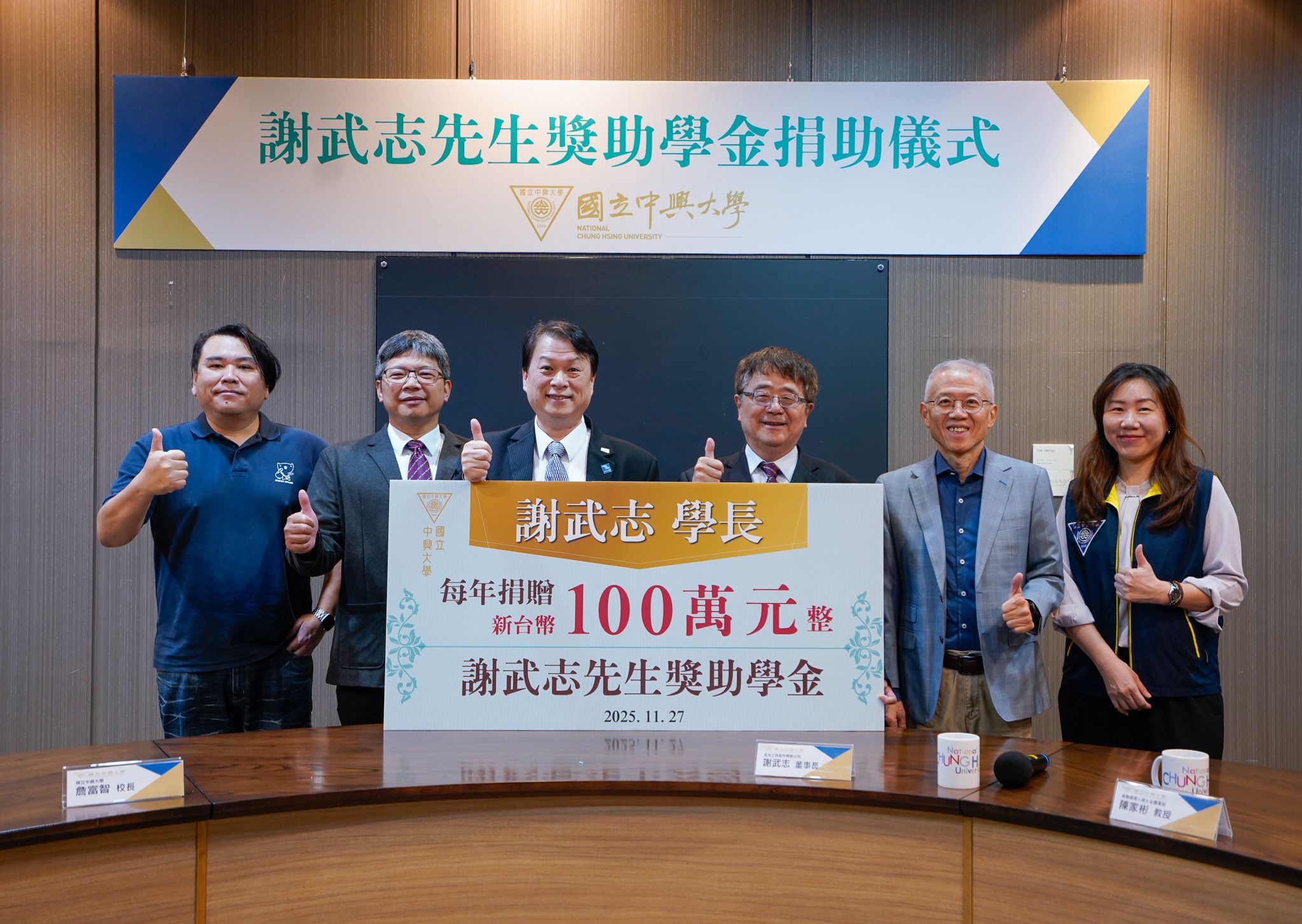 為鼓勵經濟不利學子安心向學,國立中興大學EMBA領袖組校友,同時也是現任台灣手工具工業同業公會理事長謝武志,於今(27)日返校舉辦捐贈儀式,宣布設立「謝武志先生獎助學金」,承諾每年固定捐贈新台幣100萬元,期盼透過實質的經濟支持,激發學弟妹向上的精神,協助其順利完成學業。
