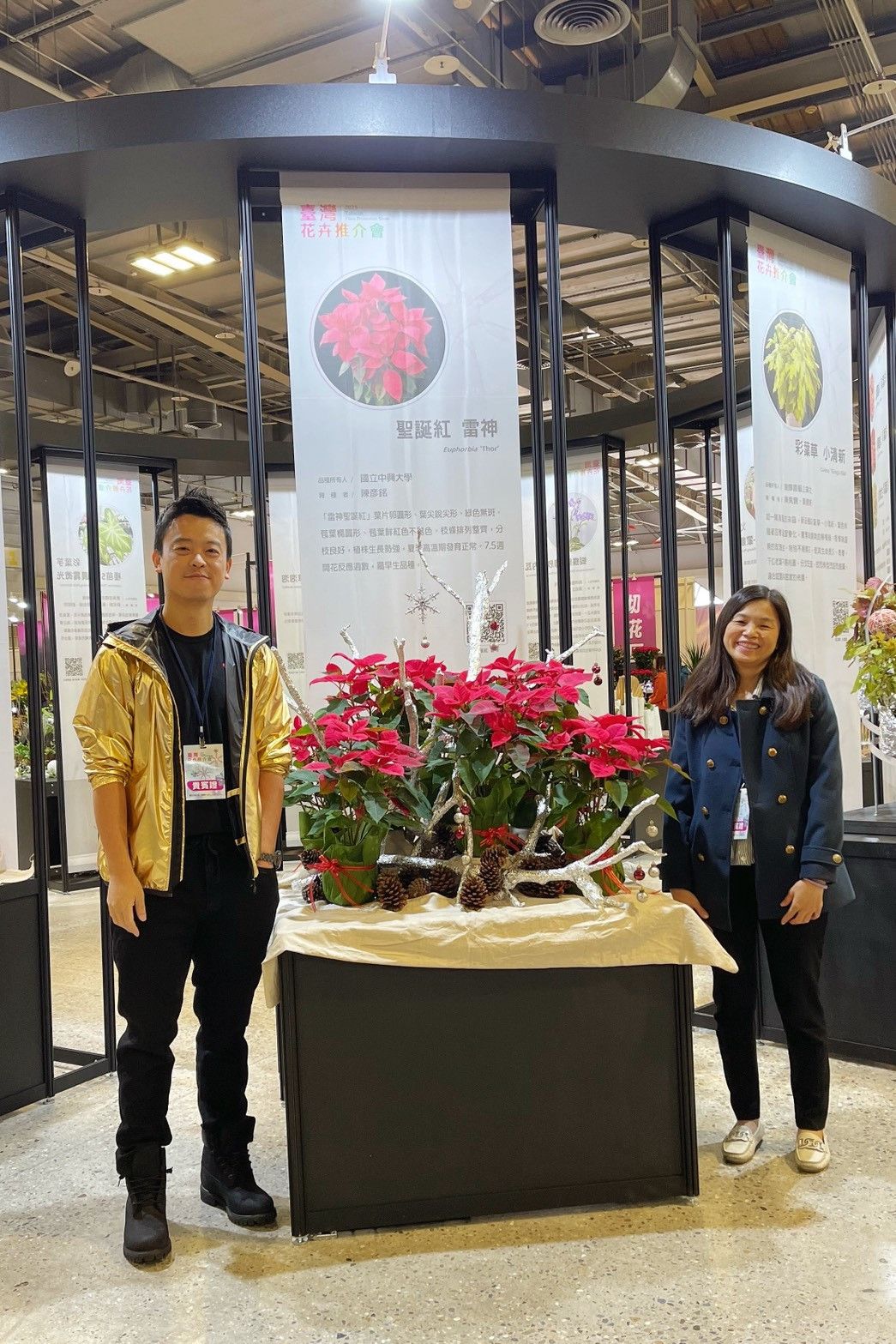 本年度除聖誕紅新品種〈雷神〉外,興大花卉創新育種研究室亦展出多款歷年代表性成果,包括世界首創「無種子釋放的三倍體營養系雞冠花」〈蛇姬〉,以穩定花序與強健植株廣受矚目;以及近年橫跨國慶與運動場域活動、以閃電葉紋聞名的常春藤〈皮卡啾〉,象徵國產花卉的年輕化、跨界化,並透過連結生活美學與流行文化展現創意。
